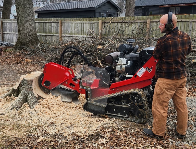 We operate a dump truck and small maneuverable machines including but not limited to a mini-excavator with many bucket attachments, stump grinders, mini skid-steer, snow blowers, and chainsaws.